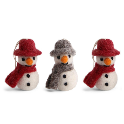 Schneemann mit Hut mini rot/grau, 3er Set, 5,5 cm