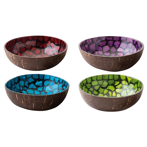 Kokosnussschale, innen lackiert mit Capizinlays, lila, D ca. 14 cm, H 5 cm