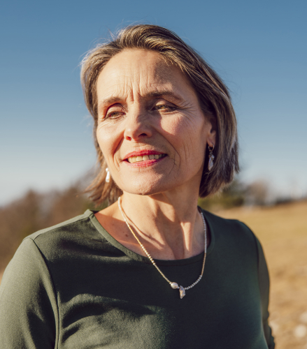 Stumpenkerze "Himmelsfarben" blau/orange/weiß