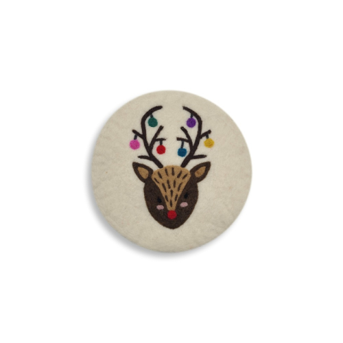Filz Untersetzer Weihnachtshirsch (Ø ca. 21 cm), naturweiß