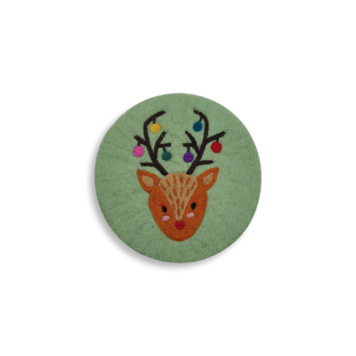 Filz Untersetzer Weihnachtshirsch (Ø ca. 21 cm), hellgrün