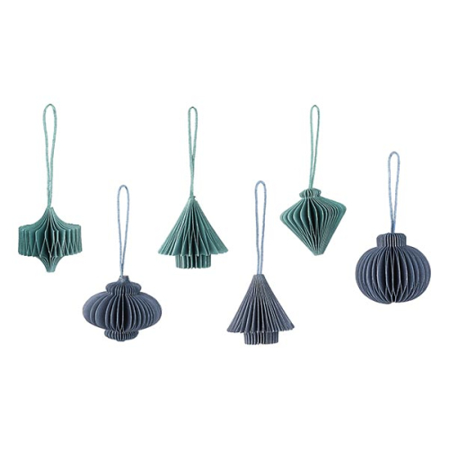 Set 12 Mini Ornamente Origami, dunkelblau+petrol, Papier
