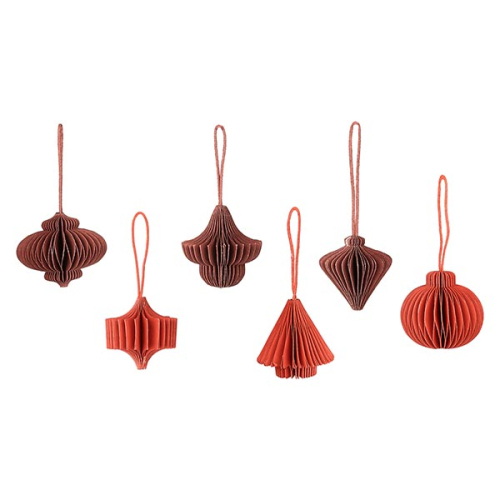 Set 12 Mini Ornamente Origami, rot+weinrot, Papier