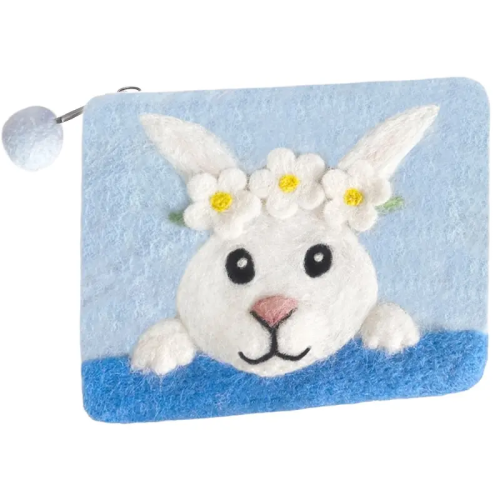 Filzbeutel Hase mit Bluetenkranz 15 x 12 cm