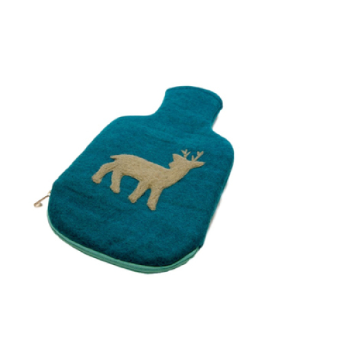 Waermflaschenueberzug, klein, Hirsch natur / Tuerkis