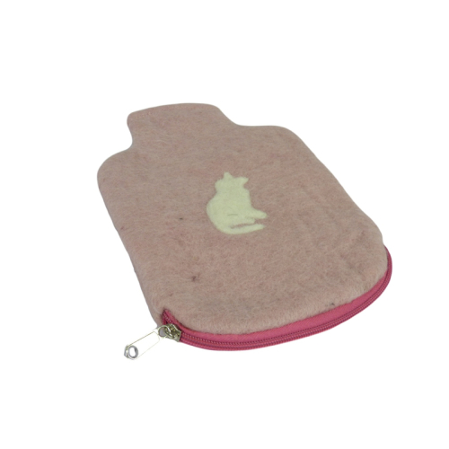 Waermflaschenueberzug, klein, Katze Weiss / Rosa