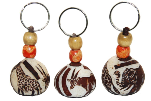 Schluesselanhaenger Makalani Holzperlen und Makalaninuss L 4 -5 cm Namibia